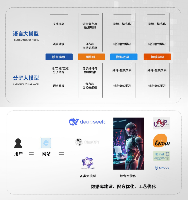 Al4SCI是基于材料四要素,融合AI+材料数据模拟计算、机器学习技术,自研小模型并集成大语言模型(LLM),通过大模型与小模型的动态协同互动,驱动新材料发现、配方优化及工艺改进的材料AI研发平台。